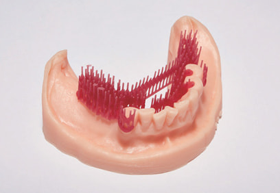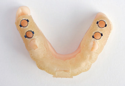 出力されたガイドは手術中に患者様の歯の上に乗せ、正確な角度と深さ、