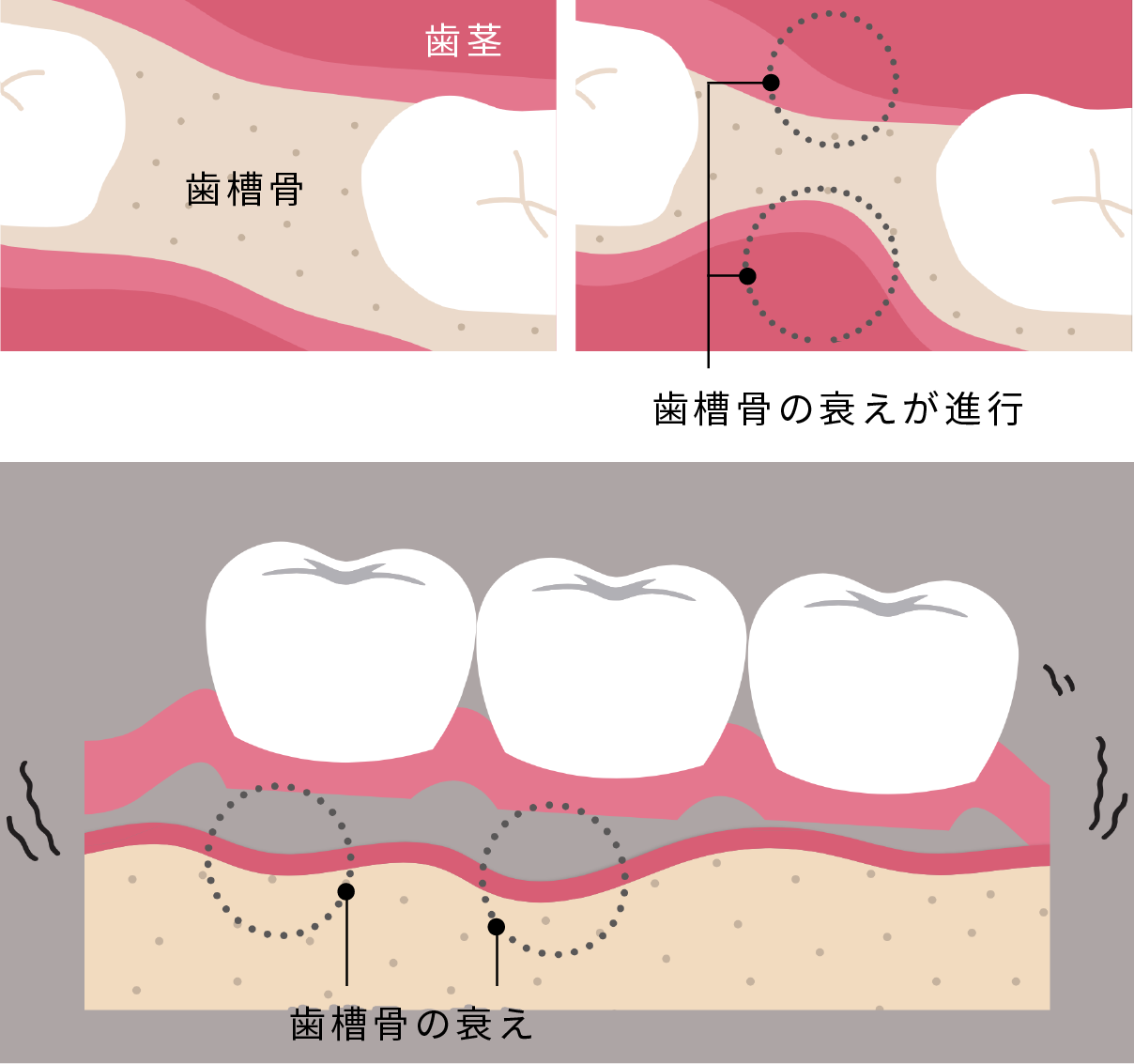 歯茎と骨の状態 | 減っていく | 減っていく | 維持 | 維持 |